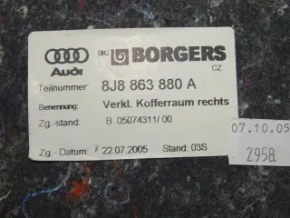 Kofferraumverkleidung rechts gebraucht AUDI TT 8J COUPE 2007-14 8J88638780A