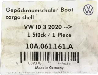 NEU Original VW ID 3 2020 Gepäckraumschale Kofferraumschutz Hinten 10A061161A