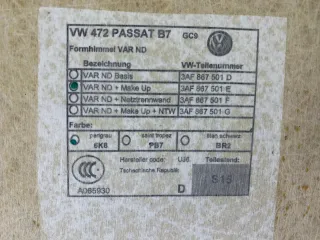 VW Passat B7 Kombi Variant Dachhimmel Himmel 3AF867501E 2010-2015