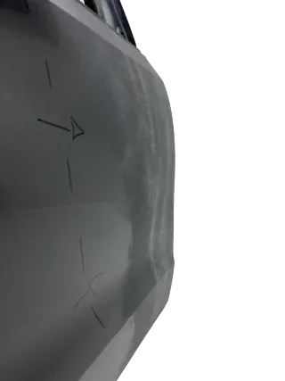 Im eingekreisten Bereich können Dellen oder Macken vorhanden sein